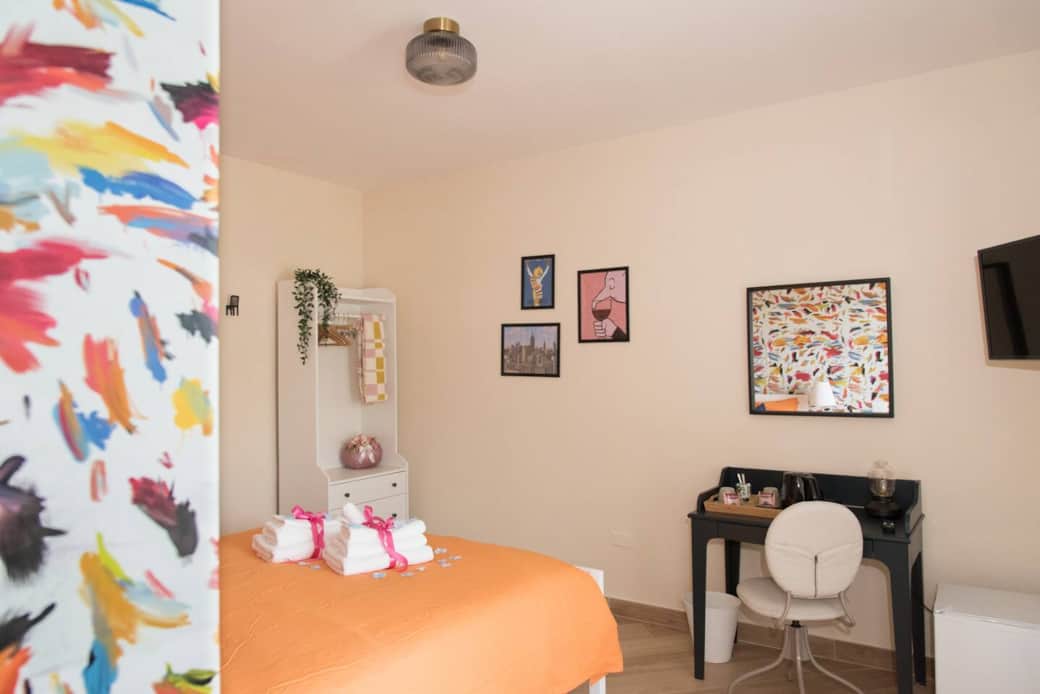 This accommodation welcomes two guests in a relaxed and bright atmosphere, among details and colorful touches that tell travel stories. From the private terrace overlooking the garden , you can sip your morning coffee or a glass of wine at sunset, letting yourself be enveloped by the tranquility of Casa Bohemia and the view of Vesuvius on the horizon.